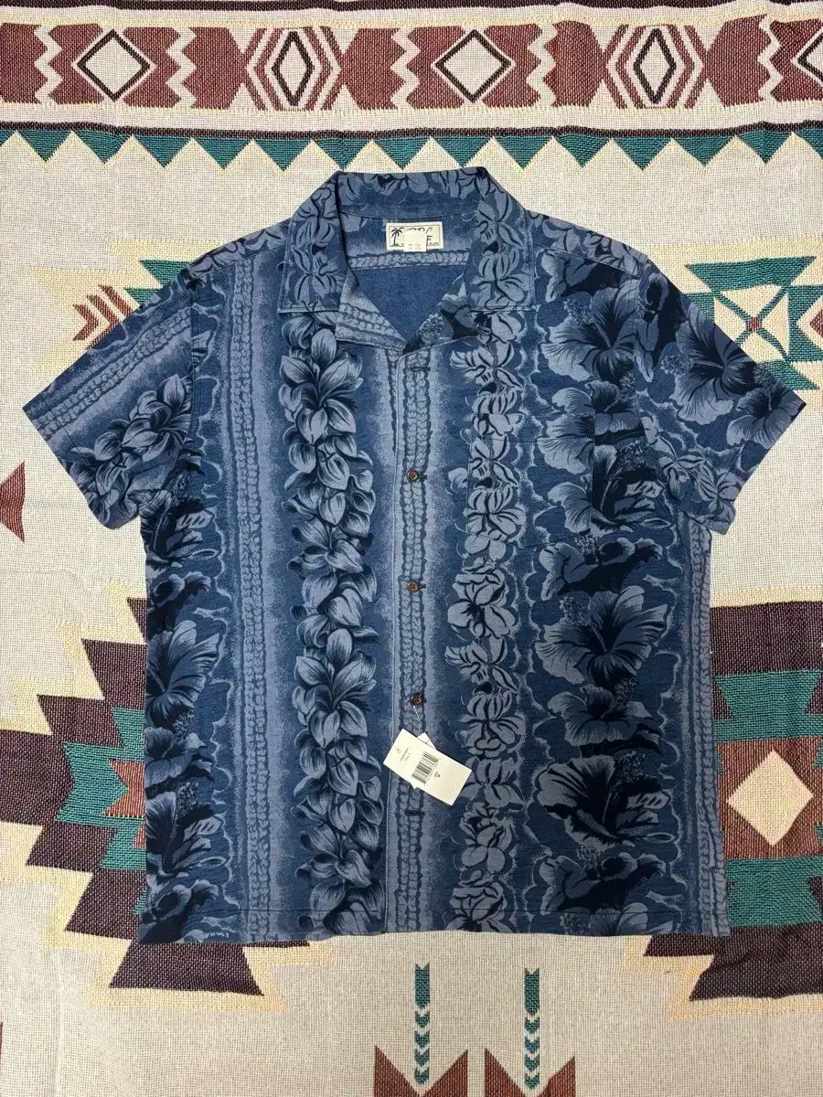 RRA インディゴ ハワイアン シャツ M
