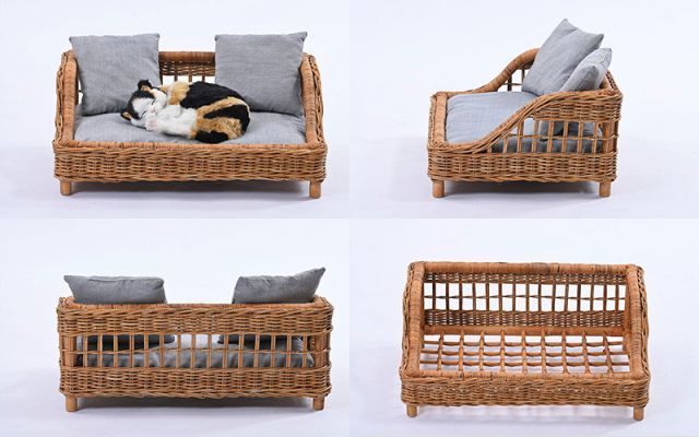 説明材料にラタンを使用して自然の風合いを味わえるペットベッド。熟練職人が手間隙をかけてひとつひとつ丁寧に手編みによってつくられています。熟練のラタン家具職人によりしっかり編まれているので、安定感のある丈夫なつくり。またラタンは軽いので移動も簡単にできます。