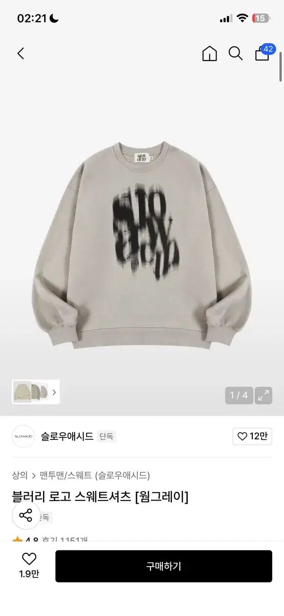 Slow Acid ブランドの温かみのあるグレーのスウェットシャツです。購入して、サイズを確認するために一度だけ着用しました。いえ、全然傷