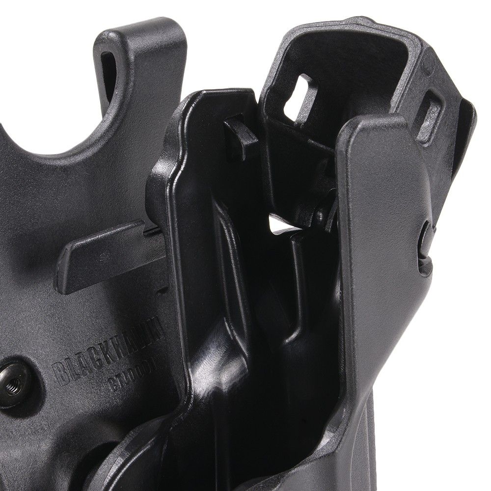 2つのロック機構を備えたセキュリティーレベル3のホルスターで、ロックの一つはオートロックとなっており、銃を差し込むことで、トリガー部分のロックが掛かる仕様となっています。ロックの解除は、人差し指でレバーを押す事で簡単に解除する事が出来ます。
