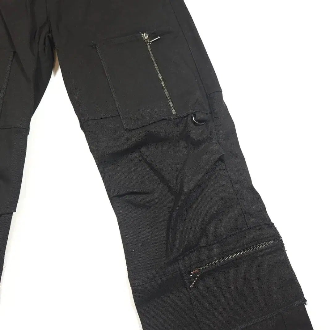 ジッパー マルチ カーゴ ズボンです。ブラック カラーで、様々な スタイルに 無難に よく 合います。複数の ジッパー ディテール ポケットがあり、 収納が 容易で デザイン的にも ユニークです。