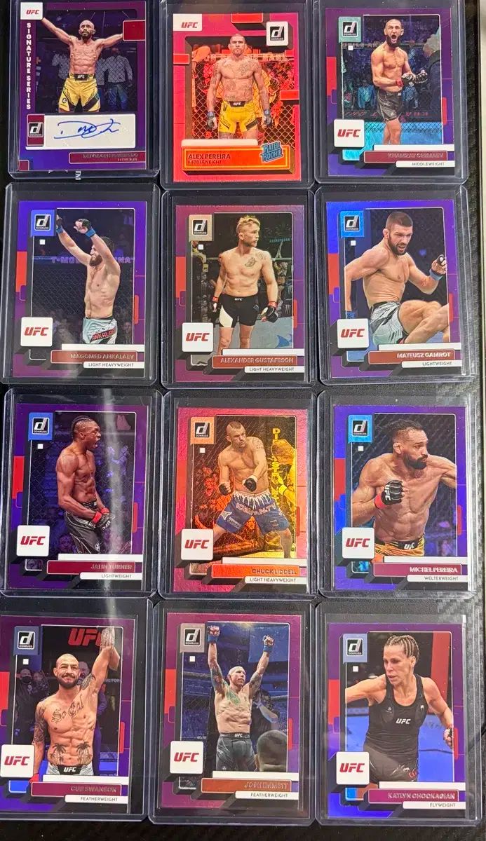 2023 Donruss UFC パープルカード ロット出品。 デイベソン・フィゲイレド選手サインカードと、チマエフ、ペレイラ、ヤンカラーエフ等含む。
