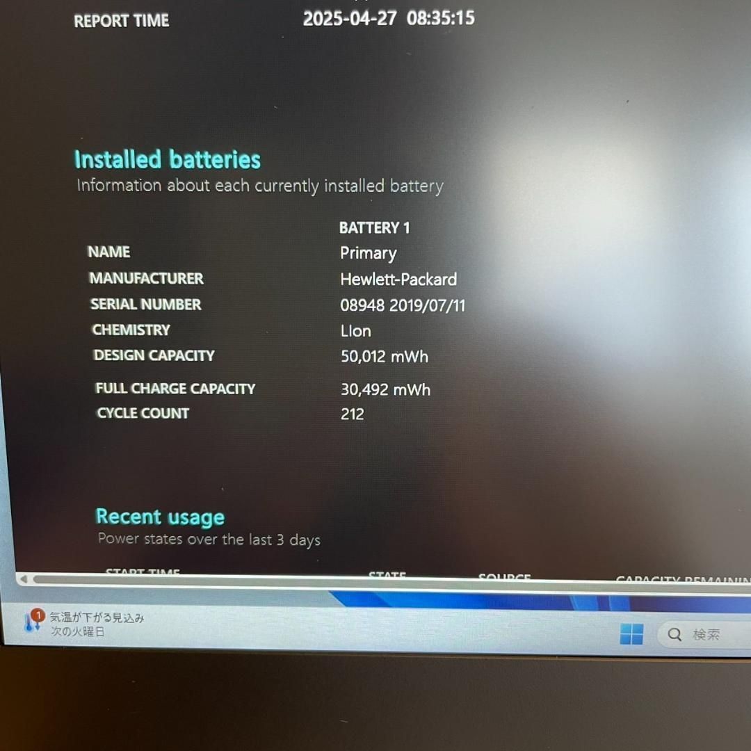 ・バッテリーレポート: