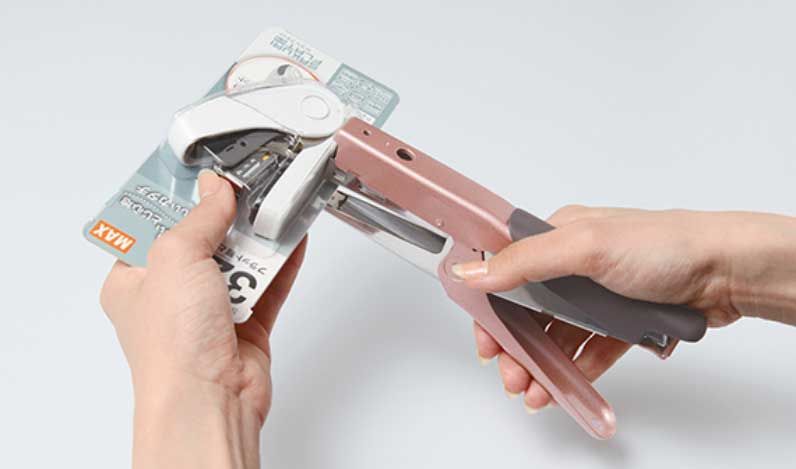 ○軽とじタイプのプライヤータイプホッチキス。