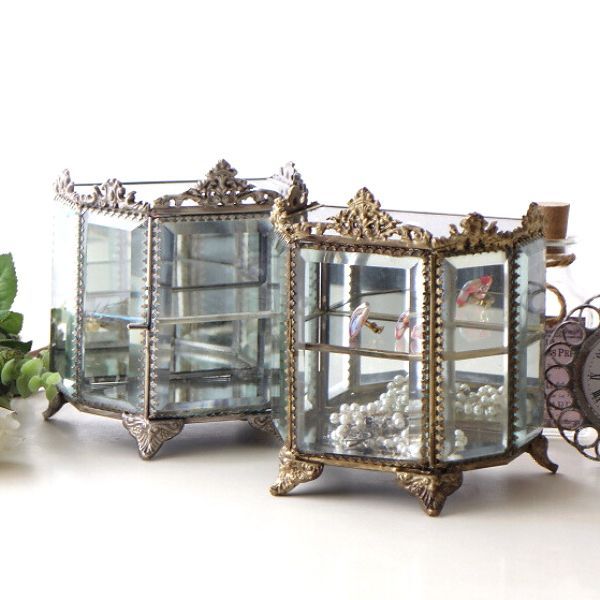 商品名 : レトロな真鍮とガラスのコレクションケース 2カラー