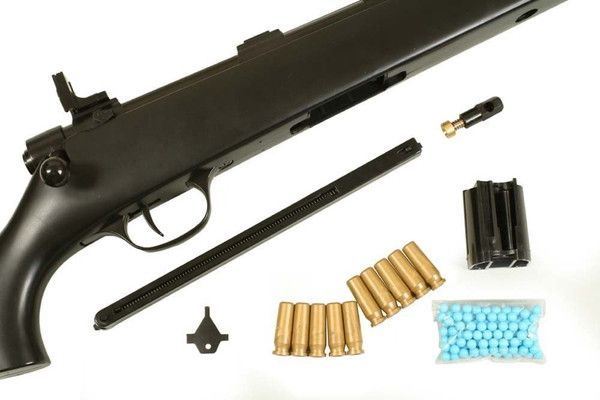装弾数25発のケースレス方式と装弾数5発のリアルなカートリッジ方式(薬莢使用)の2つのアクションが楽しめるボルトアクションエアライフルです。