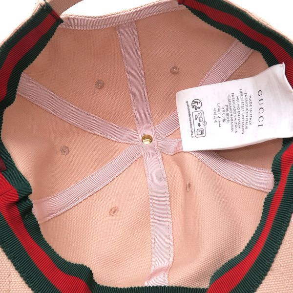 グッチからキャップが入荷しました!淡いくすみピンクのコットン生地に、フロントにはゴールドカラーのブランドロゴパーツがさりげなく輝く、可愛らしさと高級感を兼ね備えた一品です!内側のグログランテープ部分には、グッチを象徴するシェリーラインデザインが施されており、見えないところにまでこだわりが感じられる仕上がりに☆シンプルながらも、グッチらしさが詰まった、コーディネートのアクセントにぴったりのアイテムです!生地特有の起毛や収納による若干のヨレ感はあるものの、状態良好の為Aランクでのご紹介となりました◎オススメです!