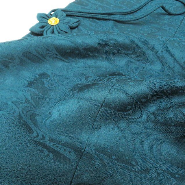 コート 道中着 着物 正絹 地模様 流水模様 深緑色 身丈101 cm 裄67 きもの北條 A 1282-3