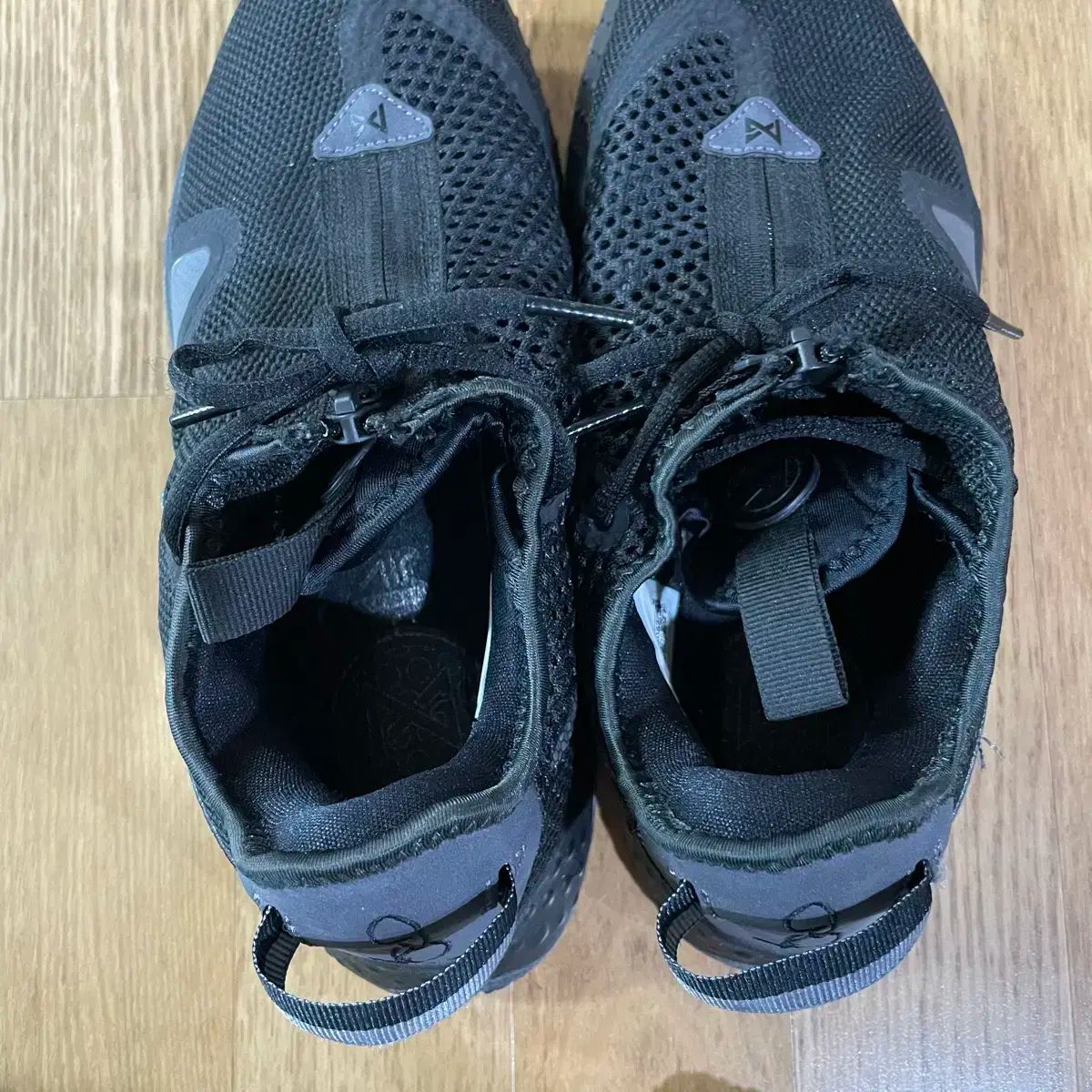 ジッパーの中に靴紐が内蔵されているタイプの靴です。