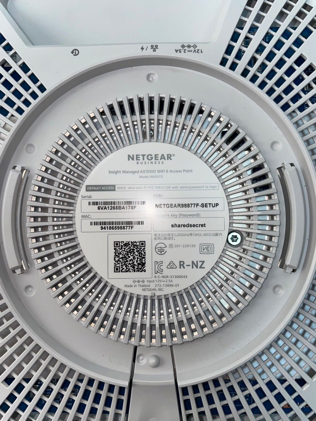 ネットギア NETGEAR WAX615 AX3000 WiFi 6 APになります。