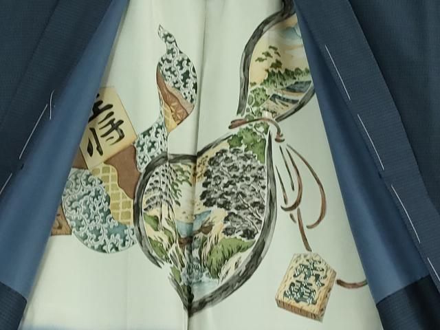 上 男性 本場大島紬 アンサンブル キングサイズ 長襦袢 風神雷神 長羽織セット 窪田謹製 証紙付き kh 5