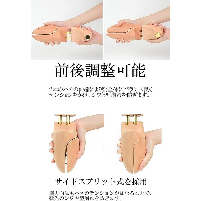 ?靴全体に均等なテンションを掛けやすいツインチューブ式、サイドスプリット式を採用しています。メンズを基準に設計しておりますが、サイズ表の詳細をご確認いただき寸法に余裕があれば女性用スニーカー等にもご利用いただけます。