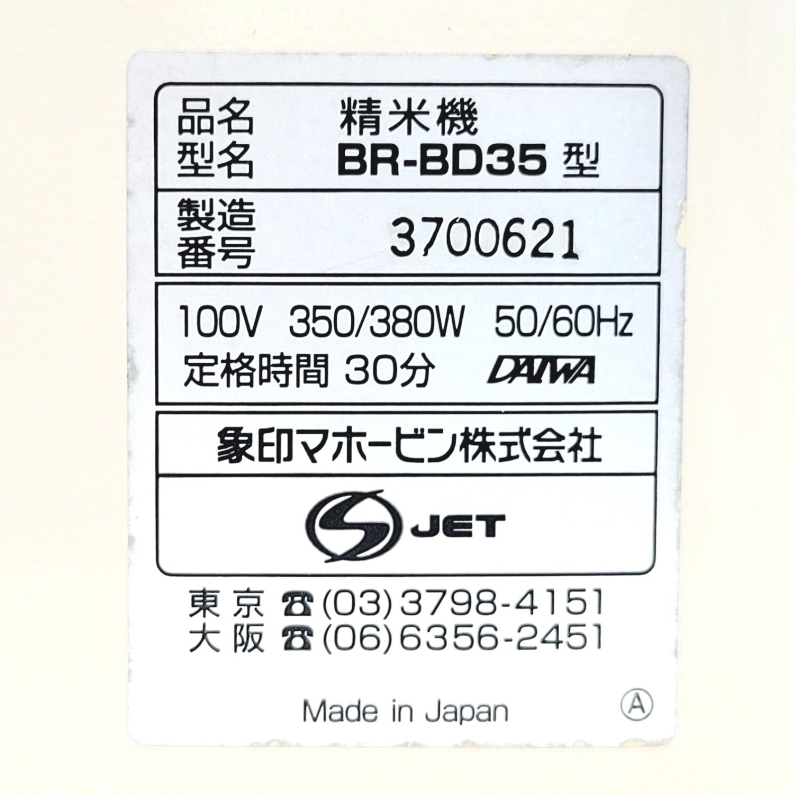 家庭用精米機 BR-BD 35