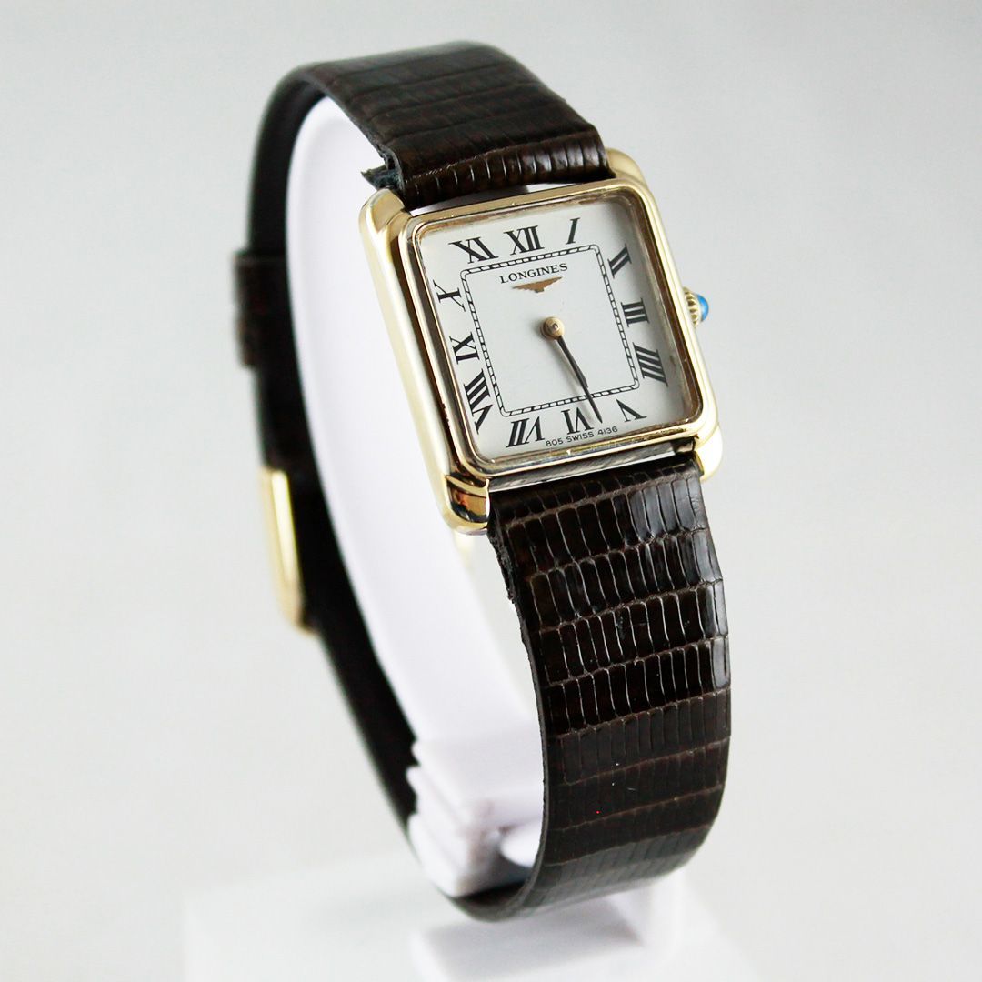 期間 販売 SA 107 ロンジン 805 4136 SV 925 革ベルト ゴールド スクエアケース ヴィンテージ レディース 腕時計 手巻き クラシカル 上品 エレガント 銀座サコム堂