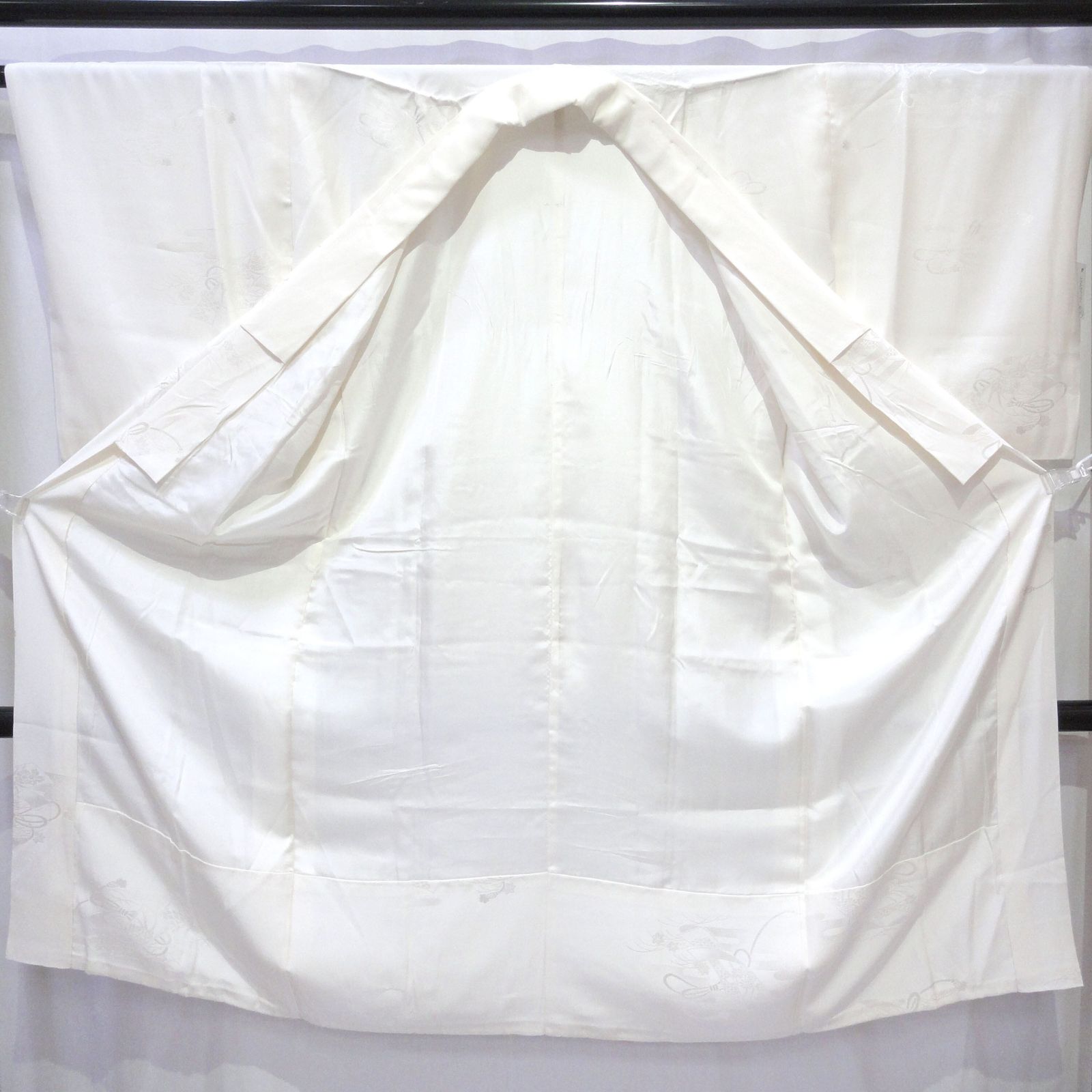 裄:約63㎝、袖:約47㎝、身丈:約123㎝、後幅:約30.5㎝、前幅:約29㎝、状態ランク:B 商品は画像に写っているものが全てです。目立つ傷みはありませんが、袖口、半衿、裾に若干のヨゴレが見受けられます。その他状態は画像をご確認ください。