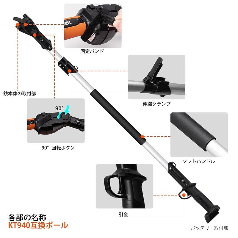 【KT 9035、KT940、KT E35及びKT 933のみ互換性あり】:Kebtek電動鋏品番KT 9035、KT940、KT E35及びKT 933のみと互換できます。お客様の要望に応えるため、伸縮ポールを新開発しました。2023年10月15日以降発注した電動鋏の場合、直接ポールと接続して使えますが、2023年10月15以前発注した電動鋏につき、出品者に連絡して接続方法を入手してください。