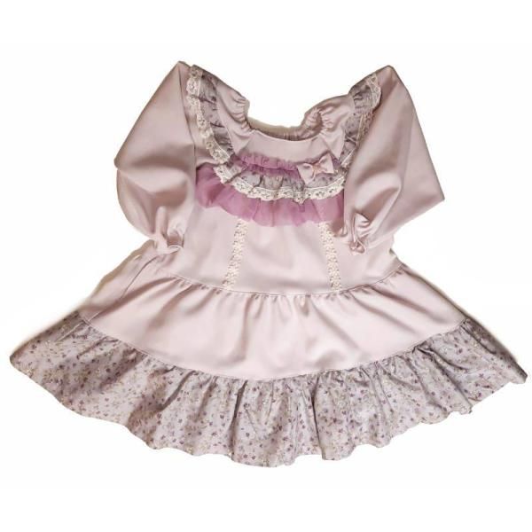 ♪フラワープリントとチュールフリルを裾と襟元にあしらったラブリーなワンピースフラワーレーステープやリボンなど女の子らしいアイテムでデコレーションしてスーリーらしさ満点