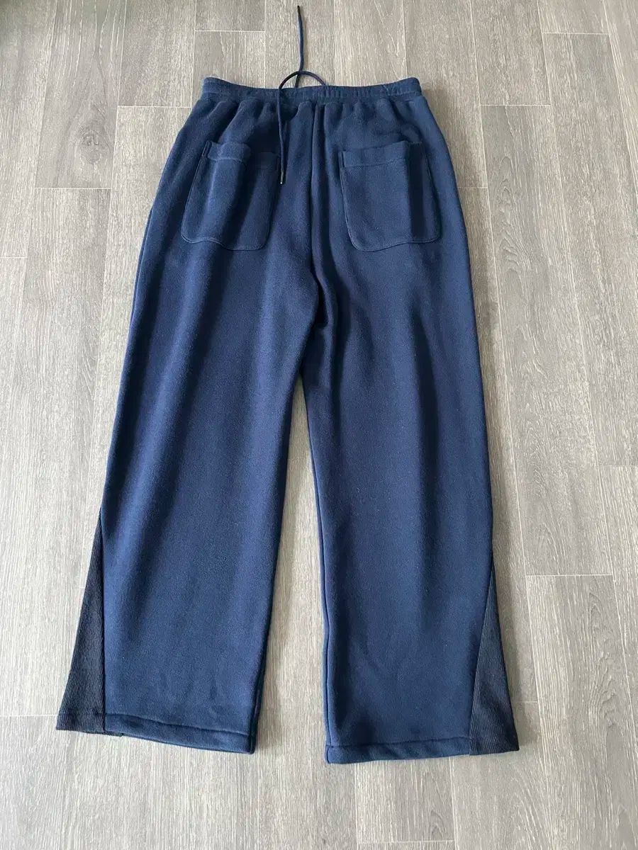 ネイビー カラーのBEAKER メンズ トレーナー ズボンです。裾に違う 素材 で POINT を与えた デザインです。楽に履ける トレーナー ズボンなので 活用度が高いです。