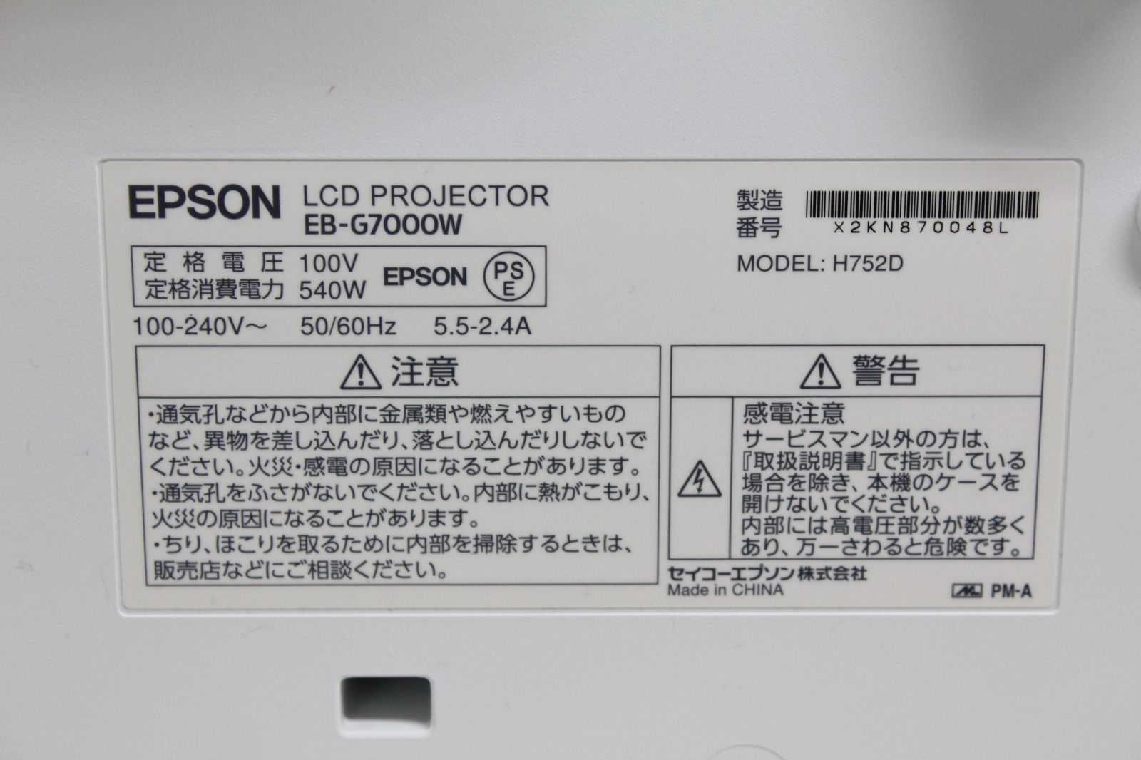 EPSON|EB-G 7000 W|ビジネスプロジェクター ④