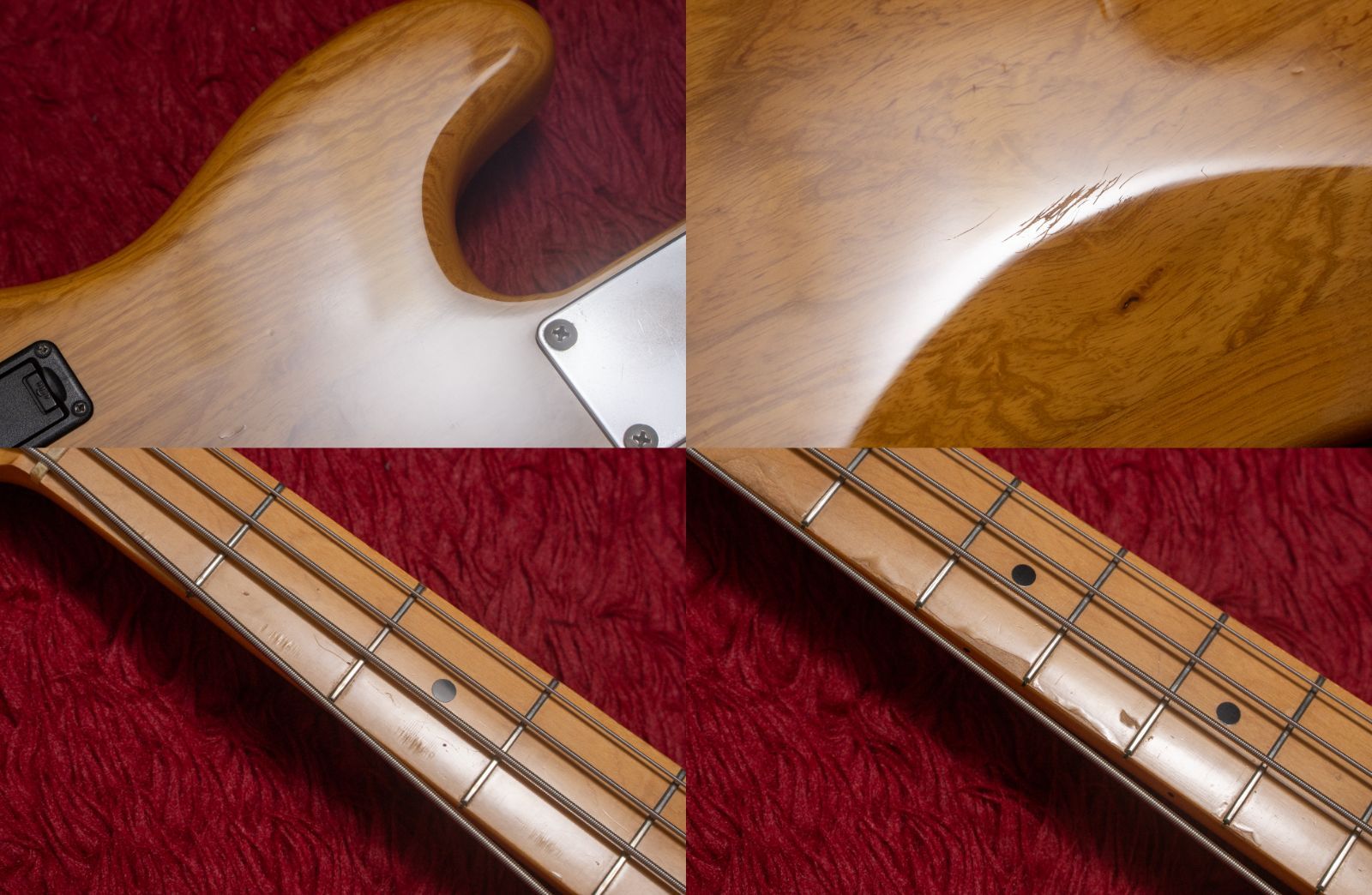 ボディや塗装面は、打痕、スクラッチ傷が見受けられます。ピックアップフェンスを取り付けたようなビス穴の跡があります。