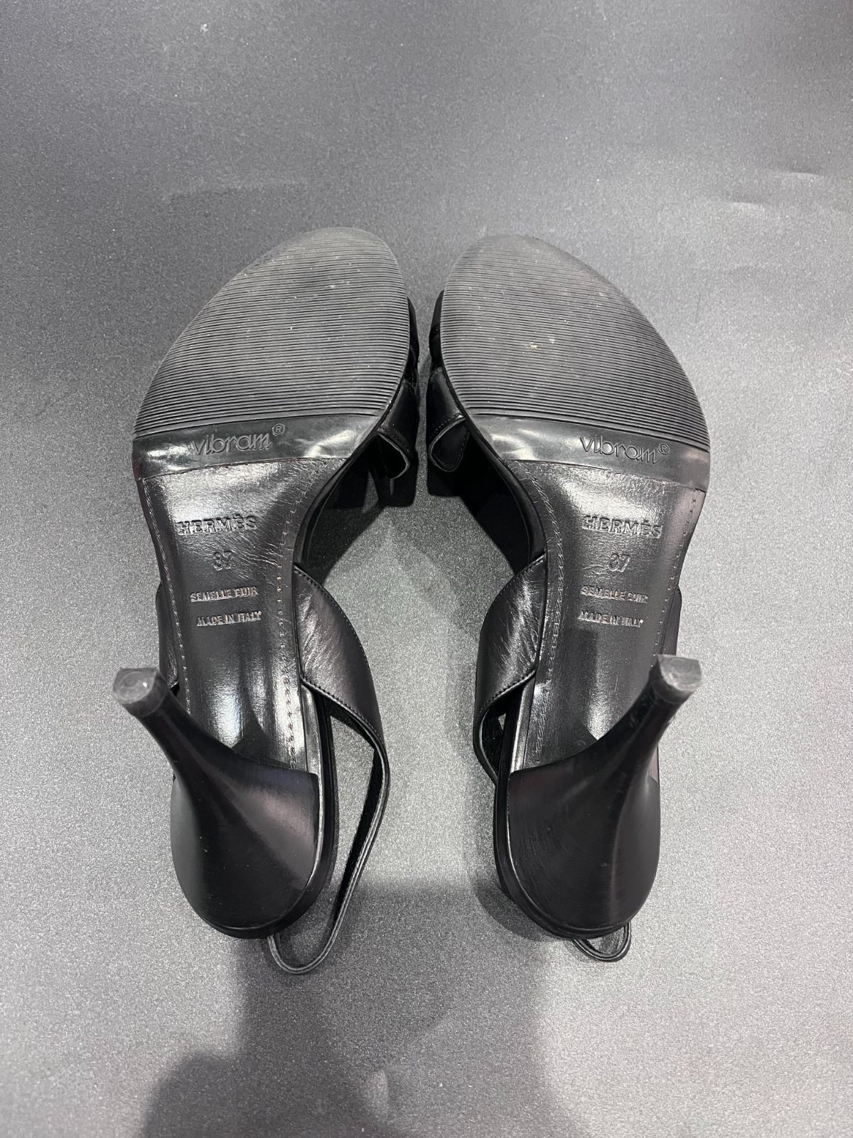 HERMES レザー スタッズ 黒 サンダル