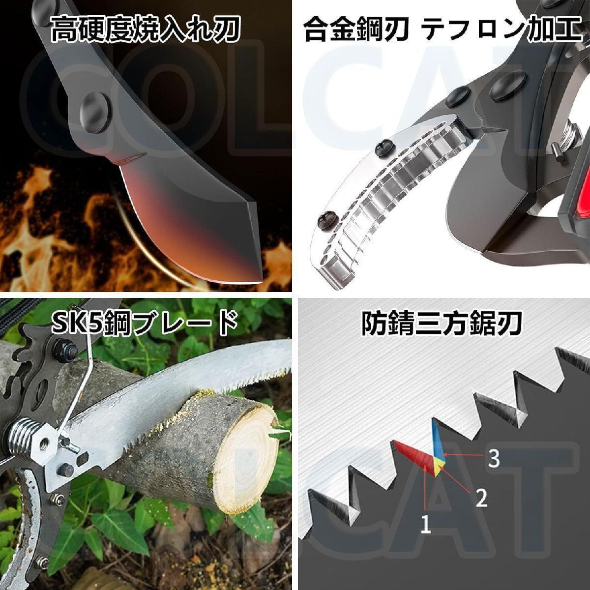 【専用のこぎり付き】専用のこぎりを搭載し、取り付けが簡単で、太い枝も切断できます。