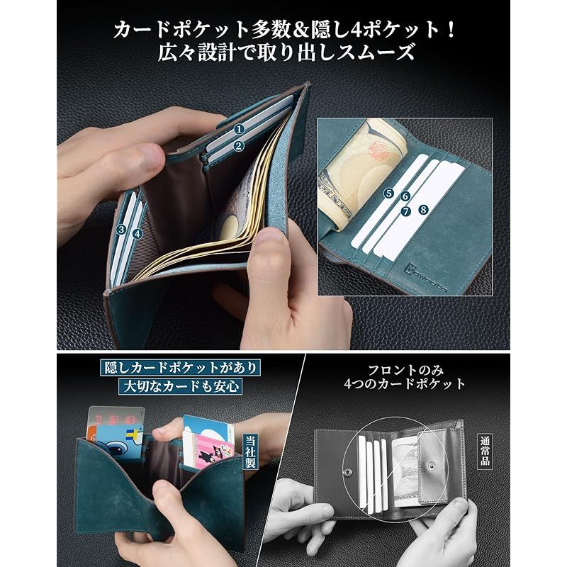 Kawaoto 財布 メンズ 2つ折り プエブロレザー 本革 二つ折り財布 薄型財布 コンパクト財布 小さい お札入れ2室 一流の革職人が作る 紳士用 金運 ビジネス プレゼント ブルー 0