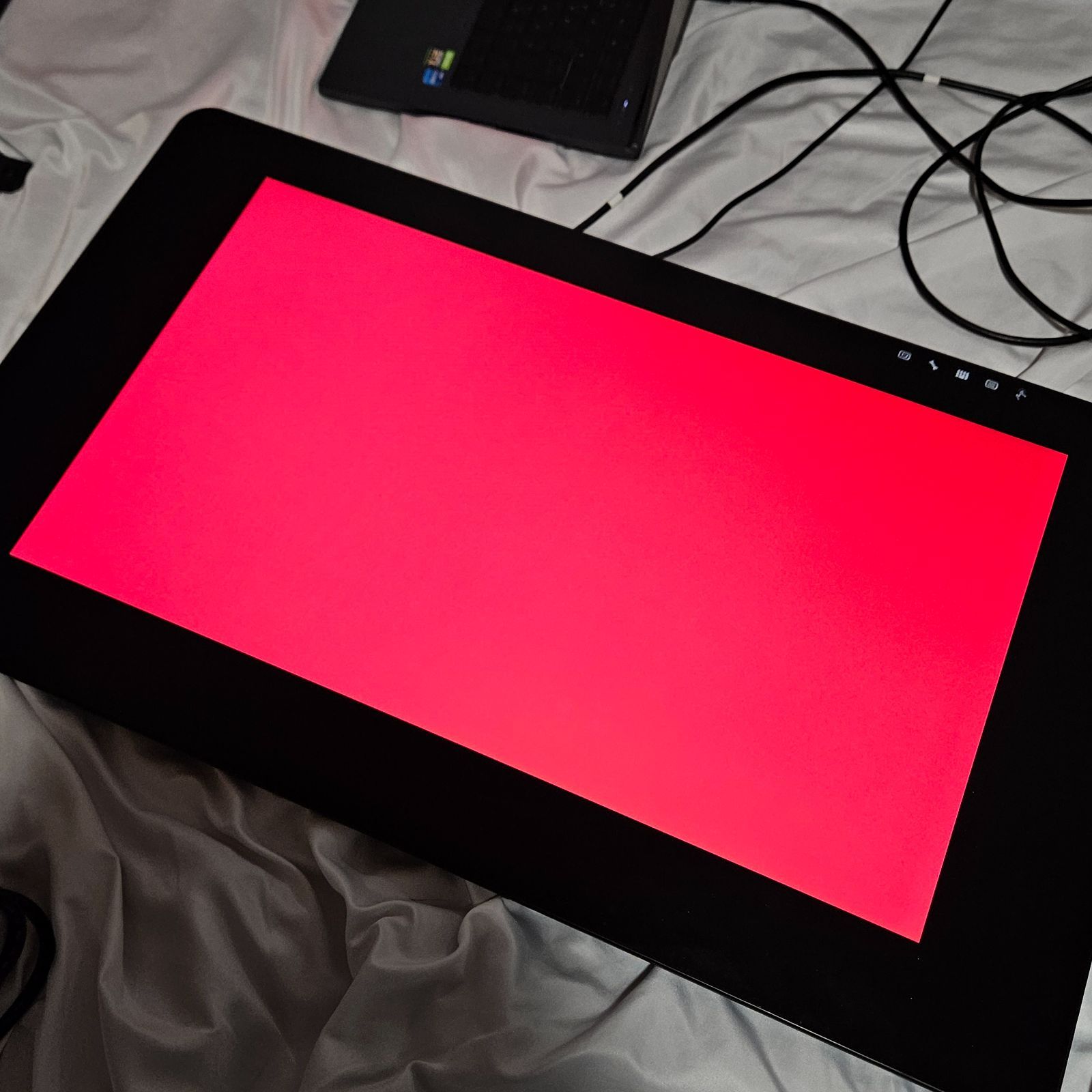 カメラの補正機能により青色の表示がおかしくなっていますが、実際はドット抜けも色ムラもありませんでしたのでご安心ください。