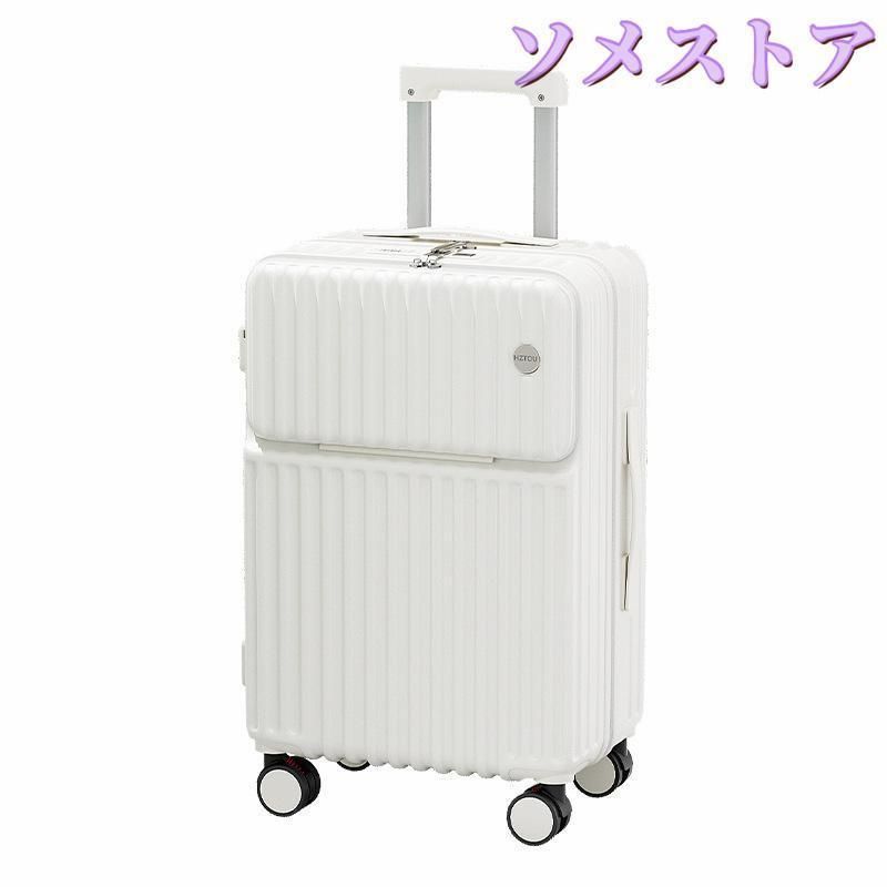 スーツケース 前開き 機内持ち込み USBポート付き キャリーバッグ フロントオープン ファスナータイプ sサイズ 前ポケット カップホルダー付き ストッパー付き
