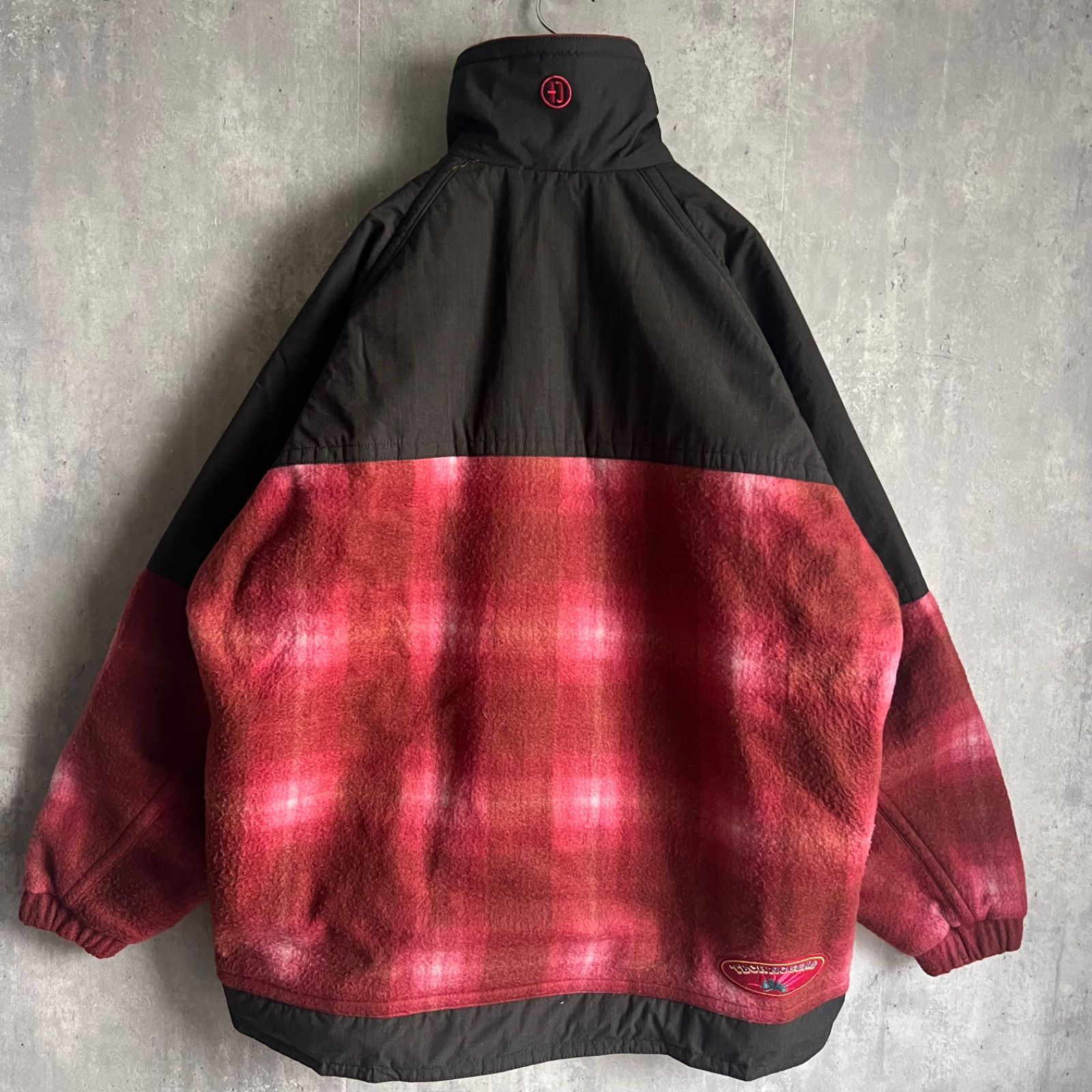 90 s デサント テクノギア ハーフジップフリースジャケット シャドウチェック 刺繍デザイン TEC-9023 XLサイズ